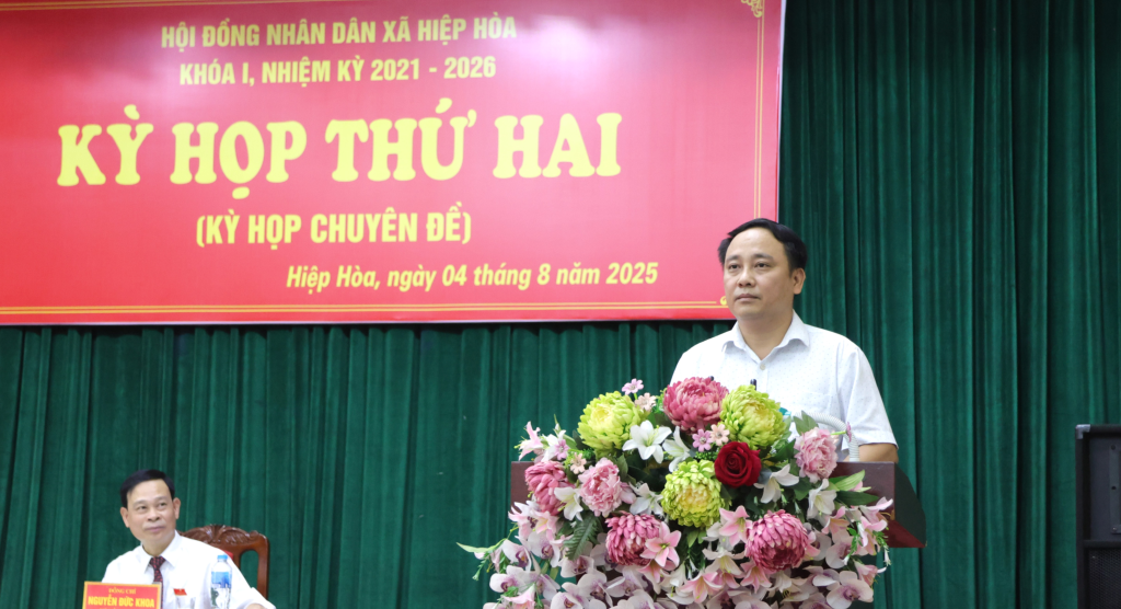 Phát biểu khai mạc Kỳ họp, đồng chí Bùi Huy Khánh- Bí thư Đảng ủy, Chủ tịch HĐND xã nhấn mạnh, đây là kỳ họp có ý nghĩa quan trọng nhằm đánh giá tình hình kinh tế – xã hội, an ninh quốc phòng năm 2025, quyết định mục tiêu, nhiệm vụ 6 tháng cuối năm 2025 và thực hiện một số nhiệm vụ thuộc thẩm quyền theo quy định của Luật. Đặc biệt là trong điều kiện bộ máy chính quyền địa phương hai cấp mới được vận hành từ ngày 1/7/2025. Xã Hiệp Hòa bước vào giai đoạn kiện toàn, ổn định tổ chức đồng thời chỉ đạo triển khai thực hiện các nhiệm vụ, các công việc trong điều kiện mới, xã là đơn vị có quy mô lớn về dân số, diện tích và nhiều tiềm năng đột phá về công nghiệp, đô thị, dịch vụ và trở thành phường trước năm 2030. Đồng chí Bí thư Đảng ủy, Chủ tịch HĐND xã đề nghị các đại biểu nêu cao tinh thần trách nhiệm, phát huy dân chủ, trí tuệ, tích cực thảo luận, đóng góp ý kiến sâu sắc, thiết thực, có tính xây dựng cao để các nghị quyết thông qua bảo đảm đúng luật, phù hợp thực tiễn, sớm đi vào cuộc sống.