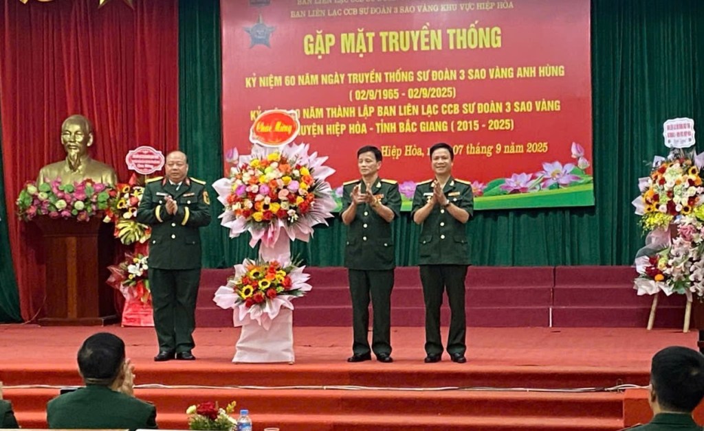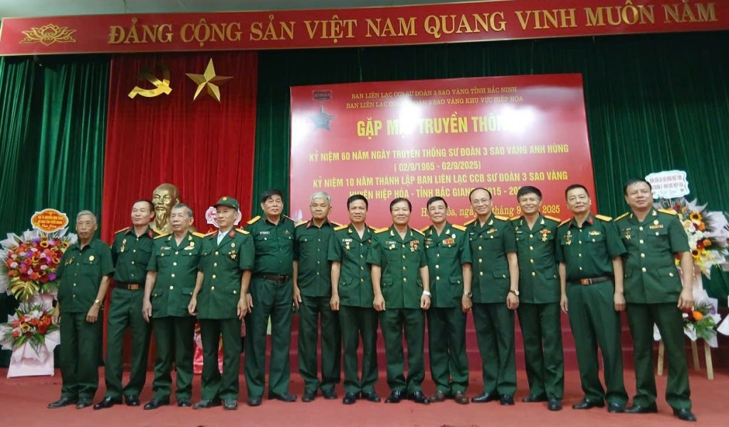 Sáng 07/09/2025; Tại xã Hiệp Hoà, tình Bắc Ninh, Ban liên lạc Cựu chiến binh(CCB) Sư Đoàn 3-Sao Vàng, khu vực Huyện Hiệp hòa (cũ). Tổ chức buổi gặp mặt kỷ niệm 60 năm ngày thành lập Sư đoàn 3 Sao Vàng anh hùng (02/9/1965 – 02/9/2025), đồng thời kỷ niệm 10 năm ngày thành lập Hội Cựu chiến binh Sư đoàn 3 Sao Vàng khu vực Hiệp Hòa (2015 – 2025).