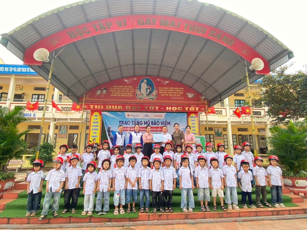Thực hiện chương trình phối hợp giữa Honda Việt Nam với Bộ Giáo dục đào tạo và Uỷ ban ATGT Quốc gia về việc tặng mũ bảo hiểm cho học sinh lớp 1 vào đầu năm học mới, sáng nay 20/10 tại trường Tiểu học Ngọc Sơn xã Hoảng Vân tỉnh Bắc Ninh , HEAD Honda Đông Ngàn đã tổ chức chương trình tặng mũ bảo hiểm cho toàn bộ học sinh lớp 1 trong trường. Tham dự chương trình có đông đủ các thầy cô giáo và các em học sinh của trường.