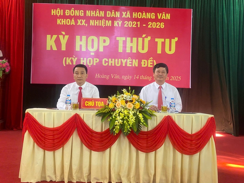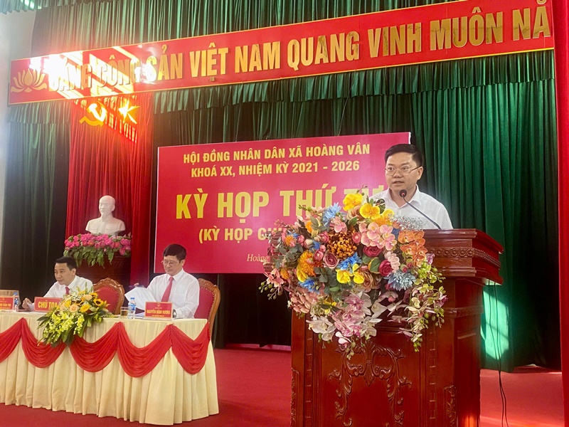 Chiều ngày 14/11, HĐND xã Hoàng Vân đã tổ chức kỳ họp thứ 4 (Kỳ họp chuyên đề). Đồng chủ trì có đồng chí Hoàng Văn Tri- Bí thư Đảng ủy, Chủ tịch HĐND xã, Nguyễn Đình Hương- Ủy viên Ban Thường vụ Đảng ủy, Phó Chủ tịch HĐND xã khóa XX, nhiệm kỳ 2021- 2026.