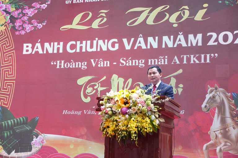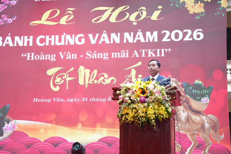 Tiếp đó, Lễ hội bánh chưng Vân năm 2026 chính thức khai mạc. Đồng chí Phạm Văn Nghị, Phó Bí thư, Chủ tịch UBND xã Hoàng Vân cho biết: Hoàng Vân là một vùng đất có bề dày truyền thống lịch sử, văn hiến, cách mạng anh hùng. Lễ hội bánh chưng Vân là nét đẹp văn hóa truyền thống, góp phần quảng bá sản phẩm tiêu biểu, đặc trưng của địa phương. Đây cũng là dịp quảng bá hình ảnh Khu di tích quốc gia đặc biệt ATK II, thúc đẩy phát triển du lịch văn hóa, du lịch trải nghiệm gắn với sản phẩm truyền thống, tạo sinh kế bền vững cho người dân.