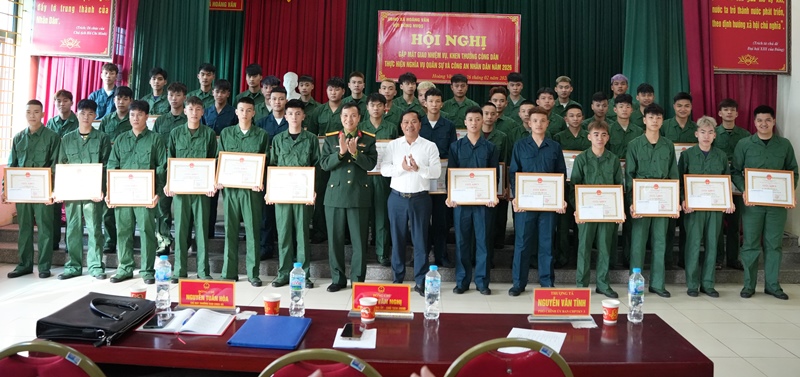 Nhân dịp này, UBND xã Hoàng Vân đã khen thưởng 91 công dân viết đơn tình nguyện nhập ngũ năm 2026, trong đó có 12 công dân tham gia công an và có 79 công dân tham gia quân sự.