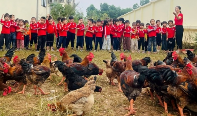 Biến khuôn viên nhà trường thành vườn hoa, khu chăn nuôi, Trường Mầm non Thanh Vân đã triển khai sáng tạo phong trào “Trồng một cây, nuôi một con”. Chỉ sau một thời gian ngắn, mô hình đã mang lại hiệu quả kép: Nhà trường đã thu hoạch 320kg gà sạch cải thiện bữa ăn cho trẻ, trồng mới 150 cây xanh và quan trọng hơn là tạo môi trường “học bằng trải nghiệm” sinh động, gieo mầm yêu thương, tinh thần trách nhiệm cho các bé.