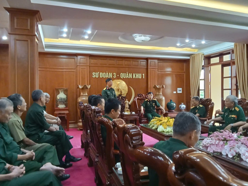 Trong khuôn khổ chuyến thăm, Ban liên lạc đã có buổi gặp gỡ thân mật với Lãnh đạo, Chỉ huy Sư đoàn 3. Đại diện Ban liên lạc đã bày tỏ niềm phấn khởi trước sự thay đổi diện mạo, sự lớn mạnh và những thành tích mà Sư đoàn đã đạt được trong thời kỳ mới. Lãnh đạo, Chỉ huy Sư đoàn cũng khẳng định, thế hệ cán bộ, chiến sĩ hôm nay luôn trân trọng và biết ơn những đóng góp, hy sinh của các thế hệ đi trước, coi đó là động lực để hoàn thành xuất sắc mọi nhiệm vụ được giao.